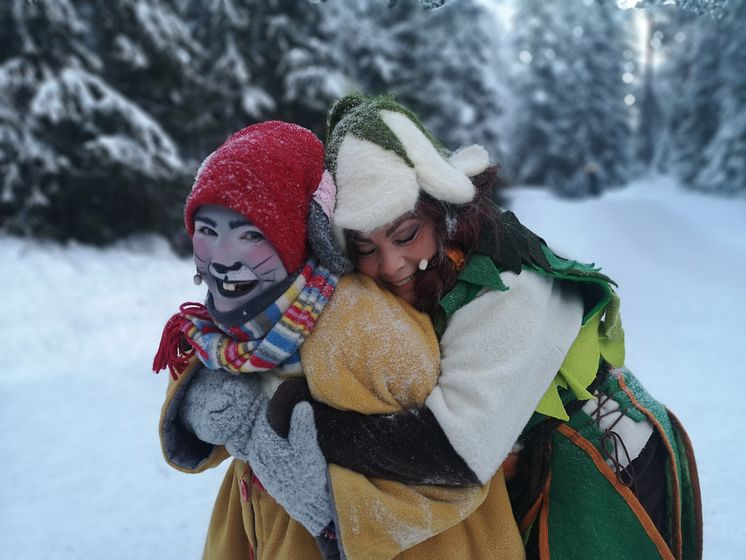 Gnaga får en kram av Myria på Tomteland