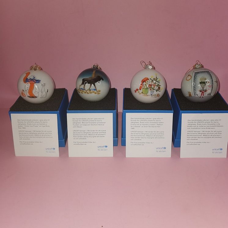 1 Fyra handmålade julgranskulor i glas från UNICEF 4 802