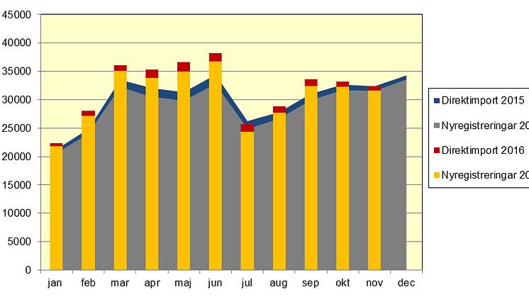 Nyregistrering av fordon under november 2016 fördelade på fordonsslag
