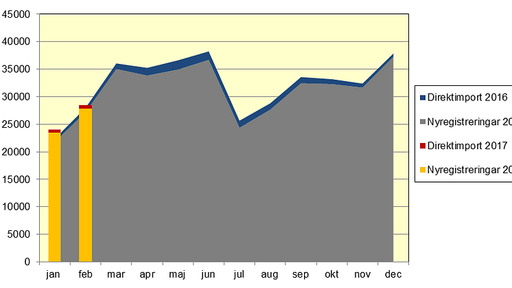 Nyregistrering av fordon under februari 2017 fördelade på fordonsslag