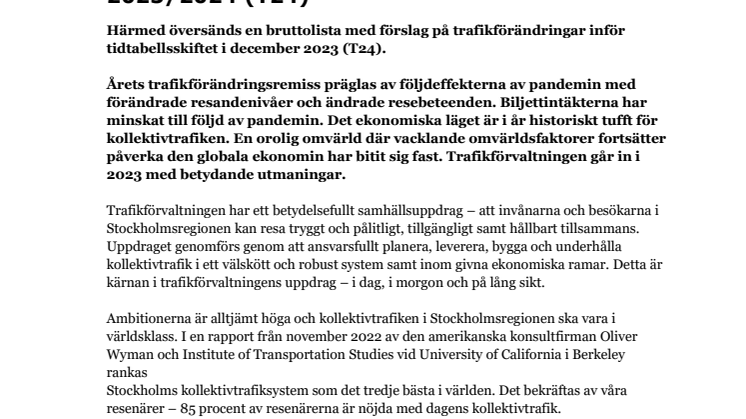 Den 10 december 2023 börjar de nya tidtabellerna i SL-trafiken och Waxholmsbolagets trafik att gälla.