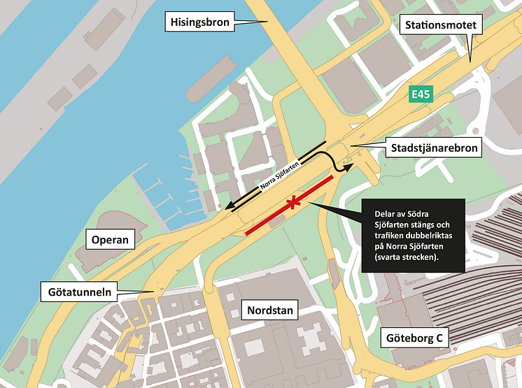 Södra Sjöfarten stängs och trafiken dubbelriktas på Norra Sjöfarten