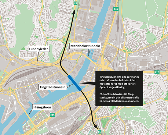 Trafiken i Tingstadstunneln dubbelriktas från den 25 april