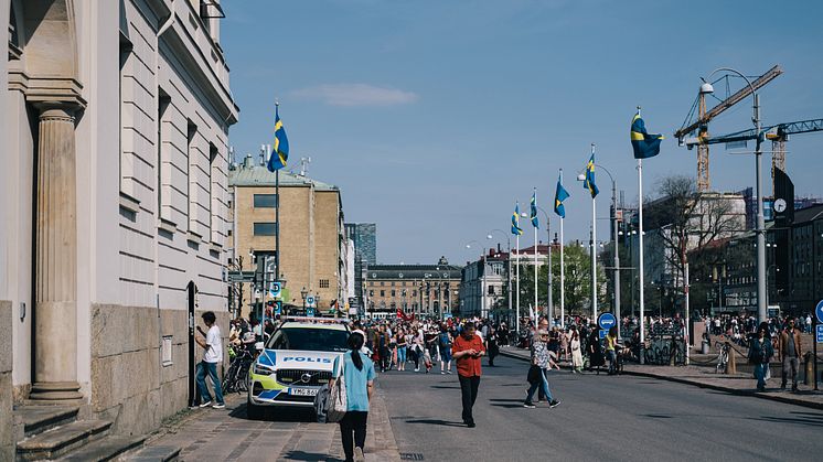Den första maj går flera demonstrationståg genom centrala Göteborg, vilket påverkar alla trafikslag mellan cirka klockan 11.30 och 18.00. Kollektivtrafiken kör andra vägar.