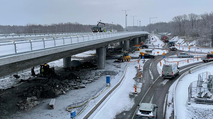 Planen var att vissa återstående arbeten i rondellen under bron skulle göras klart mellan den 6 och 22 december, vilket skulle innebära en tillfällig omledning av trafiken från Björlandavägen mot Hisingsleden söderut. Men på grund av kyla och tjäle i marken har detta arbete fått skjutas fram till våren. Det innebär att alla anslutningar i Björlandamotet är öppna för trafik tills vidare.
