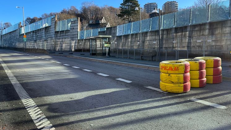 I februari i år stängdes påfarten från Ånäsmotet mot E20 Stockholm för trafik. Även gång- och cykelbanan stängdes av mellan Ånäsmotet och Munkebäcksmotet. Detta berodde på att nya bullerskydd skulle byggas längs E20 och trafiken har sedan dess letts om på olika sätt.