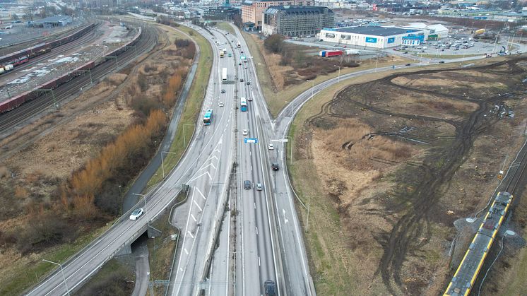 Den 3 februari startar broarbeten i Munkebäcksmotet längs E20, som påverkar trafiken i området på olika sätt. Vissa nätter stängs körfält på E20. Räkna med längre restider.