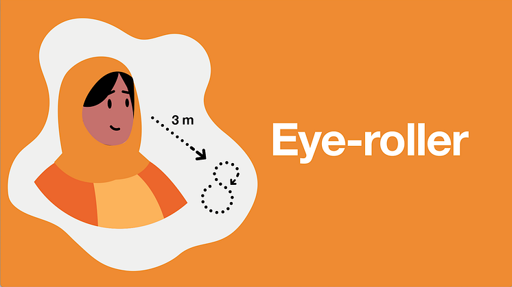 Fokusera blicken på ett område som är ca tre meter bort. Till exempel en vägg eller på golvet. Rör ögonen i formen av en åtta i ca 30 sekunder. Byt riktning och repetera en gång.