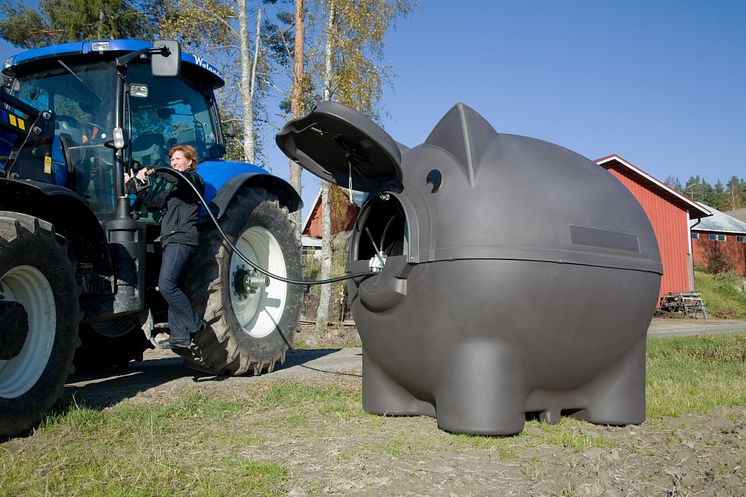 Ett roligare och bättre alternativ till de traditionella farmartankarna. Diesel-Piggy är en lagringstank helt i plast för diesel- och eldningsolja. Volymen är 2900 liter. Det korrosionsfria materialet ger en ren hantering av bränslet.
