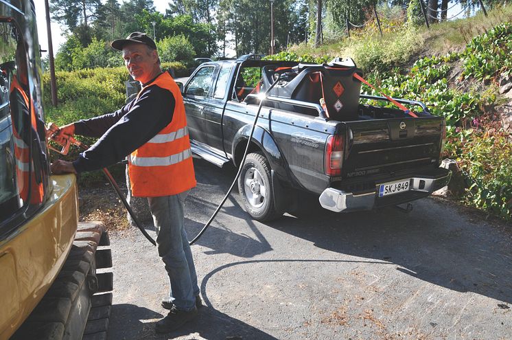 Smidig och säker tankning med bränsletank från Finncont. Låsbart lock och integrerad skvalpplåt. Ingen ADR-utbildning krävs på föraren vid transport.