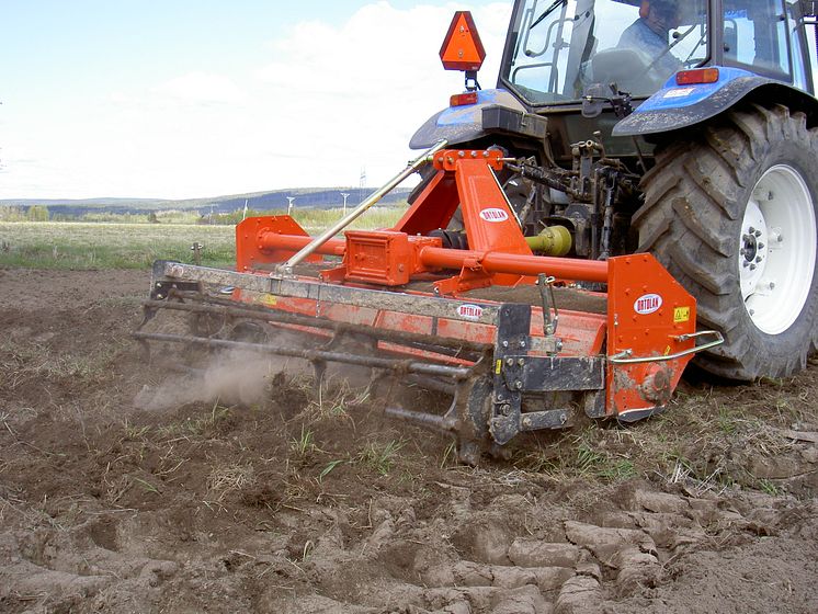 Jordfräsen ger jämn bearbetning av jorden över hela sin bredd.