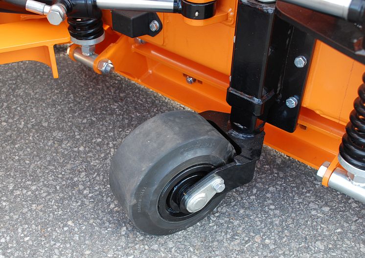 U-plogen går att utrusta med justerbara stödhjul, vilket är lämpligt när snöröjningen sker på ömtåliga underlag.