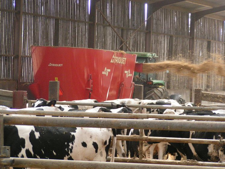 Mixervagnen kan utrustas för halmsnittning varvid en inbyggd fläkt ser till att den snittade halmen kommer på rätt ställe - ger "2 maskiner i 1".