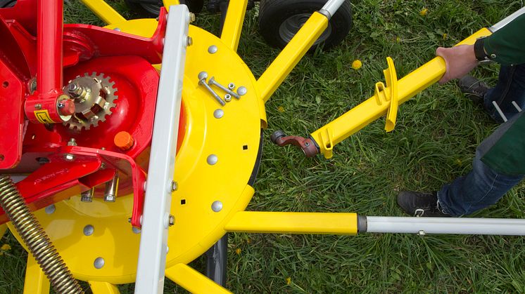 Pöttinger TOP 842C är utrustad med TopTech Plus-rotorn med en kurvbana på 420 mm och ett lageravstånd för pinnarmarna på hela 700 mm. Den stora kurvbanediametern ger en väldigt mjuk gång och låg belastning på rotorns lagring. Pinnarmarnas långa lagringsavstånd ger en god stabilitet och lång livslängd. Även service och underhåll är väldigt enkelt, exempelvis är hela pinnarmsfästet inklusive lagring endast monterat med två bultar.