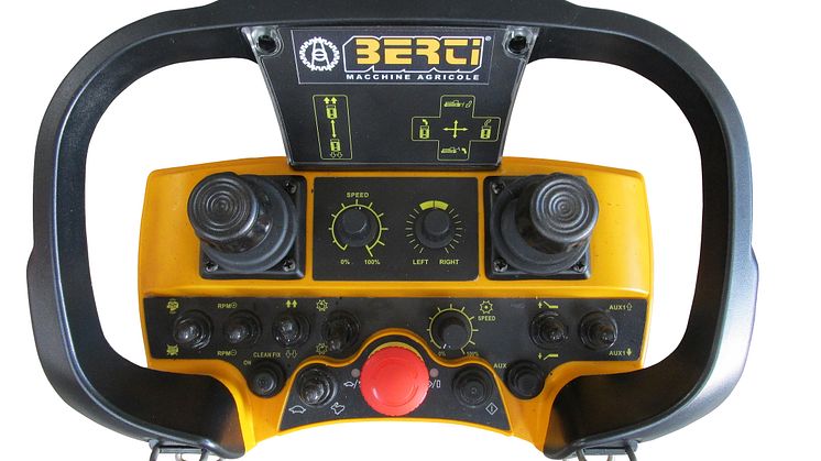 Från den lätta och överskådliga radiodosan sköts maskinens alla funktioner med allt från exempelvis start/stopp, hastighet, styrning, koppling av redskap till viktkompensering höger/vänster. Maskinen är standardutrustad med reverserbar kylfläkt så att klipprester enkelt kan blåsas ut för att garantera tillräcklig kylning av motorn vid långa arbetsdagar. Hydraulsystemet är uppbyggt av tre kretsar: höger respektive vänster band samt huvudkrets för drift av klipphuvud och höjdinställning.