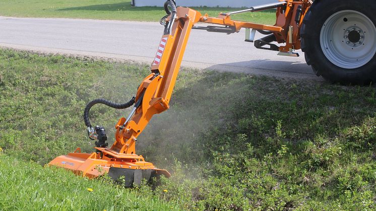 Huvudramen kan vridas in 95° bakom traktorn och är även i arbetsläge utrustad med ett hydrauliskt påkörningsskydd. Huvudets tiltled har ett rörelsemönster på hela 245° för klippning av både positiva och negativa slänter så väl som buskage 90° upp.