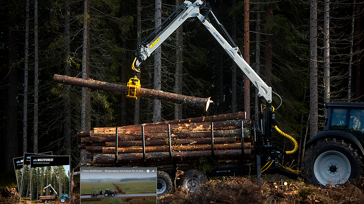 Skogsvagnar och kranar från Trejon Multiforest förvandlar din traktor till ett kraftfullt skogsekipage, vilket gör arbetet i skogen snabbt, effektivt och roligt – varje dag, många år framöver. Nu lanserar tillverkaren en 5 tons skogsvagn och två nya vikkranar med 3,9 respektive 4,3 m räckvidd.