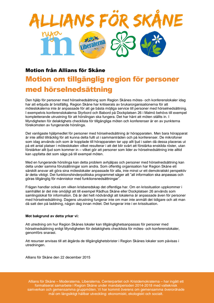 Allians för Skånes motion om tillgänglig region för personer med hörselnedsättning