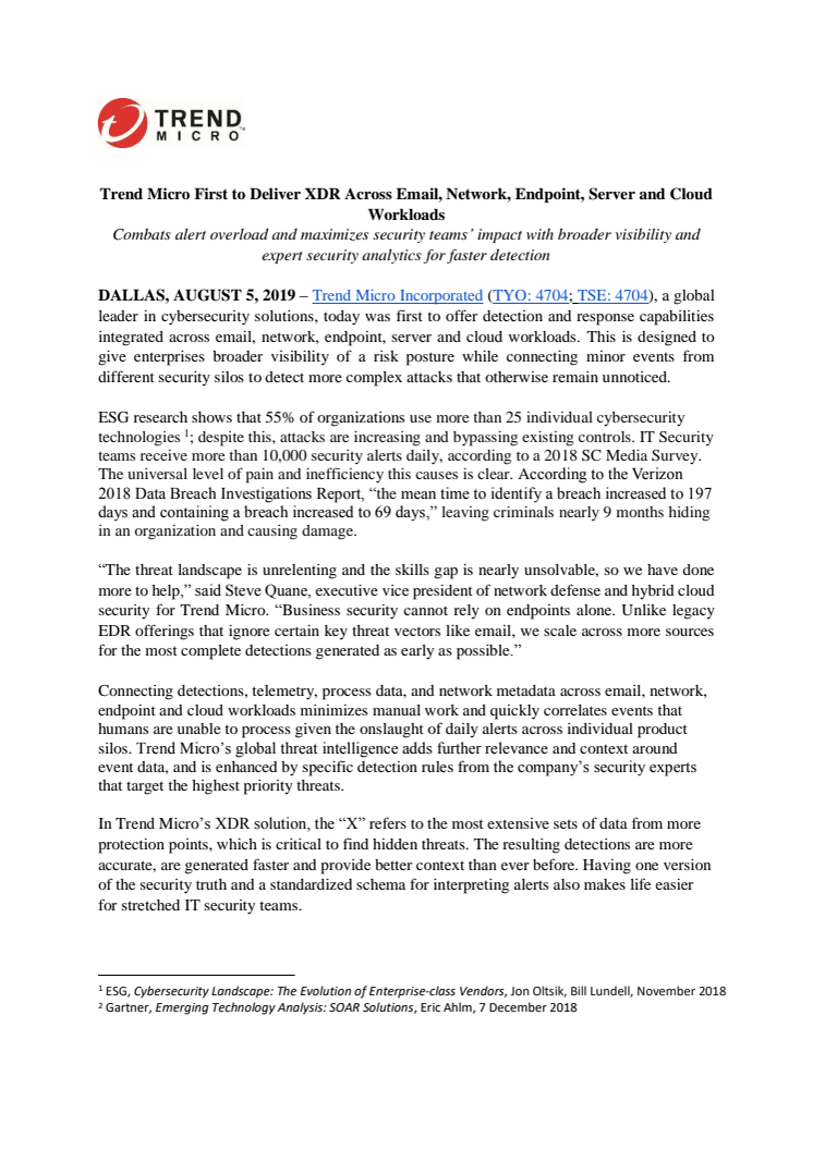 Trend Micro lanserar marknadens mest heltäckande säkerhetslösning för företag någonsin – Trend Micro XDR. Lösningen levererar Detection & Response-säkerhet för såväl e-post, nätverk, arbetsplatser, servrar och molntjänster.
