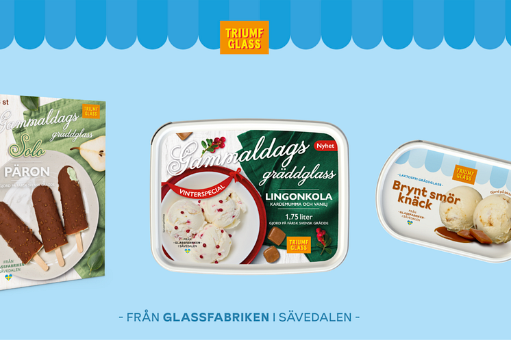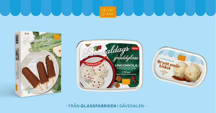 Triumf Glass lanserar två nyheter för hösten: Gammaldags Gräddglass Vinterspecial med smaker av brynt smör-knäck, apelsin och kanel, samt Snackis i smakerna Hockeypulver och Nöt Crème. Produkterna kombinerar nostalgi med innovation och finns i butik från vecka 40. Perfekt för både julbordet och nostalgiska glassälskare.