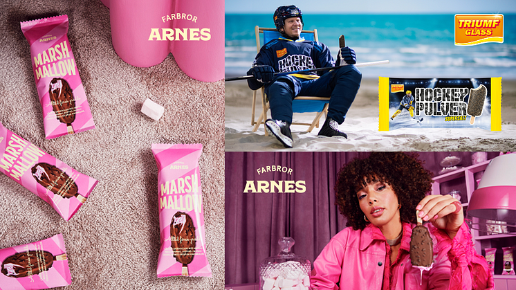 Årets minst lagoma nyhet från vårt premiumvarumärke Farbror Arnes, fortsätter varumärkets tradition av innovativa smaker. 2024 års tillskott är inget undantag, glassmarknaden välkomnar ett färgstarkt tillskott med en spännande touch av nyskapande. Nu lanserar vi Farbror Arnes Marshmallow, en krämig gräddglass med smak av marshmallow doppad i mjölkchoklad med krispiga kaksmulor.