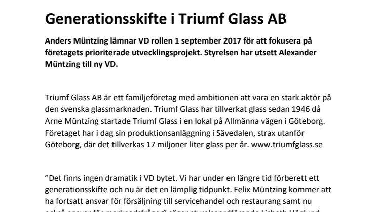 Generationsskifte i Triumf Glass AB