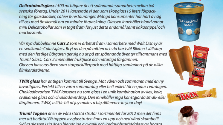 På glassfabriken i Sävedalen är vi nu äntligen klara med säsongens nyheter för pinnar och strutar. Med glädje kan vi presentera följande nyheter!