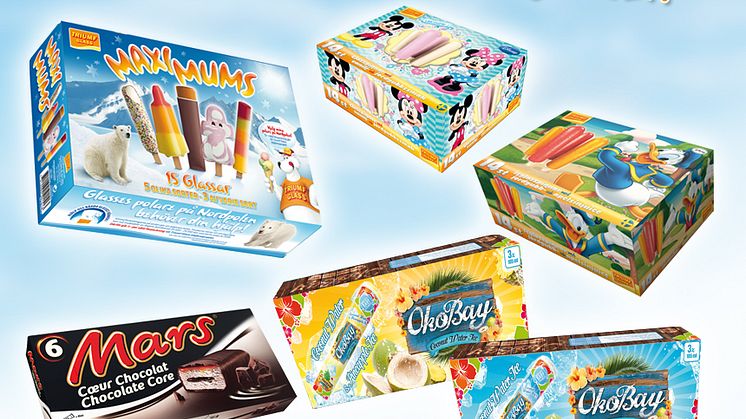 Triumf Glass fortsätter att utveckla samarbetet med Walt Disney consumer products och vi lanserar nu Kalle Anka isglass med Jordgubbs- och Apelsinjuice samt den laktosfria glassen Mimmi & Musse, vanilj- och jordgubbspinnar. Produkterna är multipacks för dagligvaruhandeln med 14 glassar i varje förpackning.