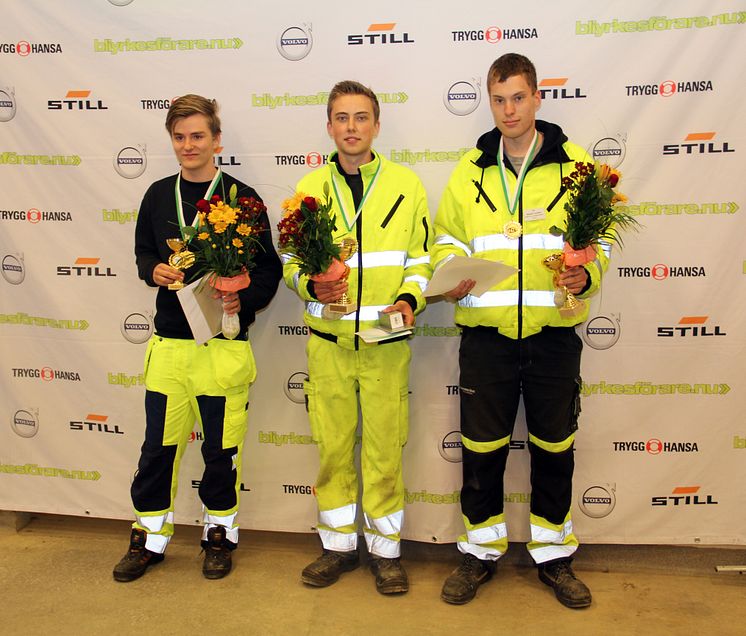 Från vänster till höger. Trea Anton Eriksson, Malmenskolan i Grängesberg, Vinnare Tom Nilsson, SYAB Kalmar och andrapristagare Markus Larsson från SYAB i Kalmar.
