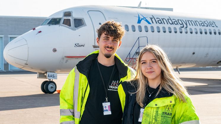Zeb Kentkuran Glindell och Isabelle Alvarsson går på Arlandagymnasiets flygteknikprogram.