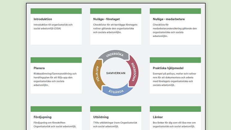 I OSA-guiden på tya.se/osa-guiden finner du exempelvis fördjupningsavsnitt, checklistor, handlingsplan och rutiner. Genom att svara på frågor i Snabbkollen får du en överblick och råd om vilka områden företaget bör starta med.