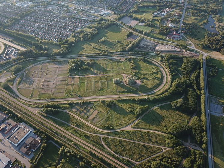 Det nya Jägersro-området sett från sydväst. Till vänster utom bild, är dagen bana lokaliserad.