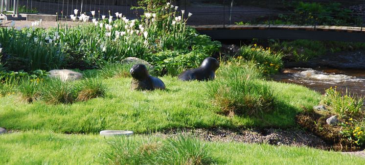– Det som gör Strömparken speciell är fiskvägen som går igenom parken. Vi som jobbat med utformningen av parken har från början tagit hänsyn till hur parken ska gestaltas för att besökare ska få en chans att komma mycket nära fisken utan för den delen störa den. Som ett fint avslut på projektet har vi tillsammans med övriga konsulter passat på att donera ett bidrag till två stenssälar som har placerats bredvid lekplatsen. Det är ett sätt för oss att visa vår uppskattning för att få vara del av ett så givande projekt i Norrköping.