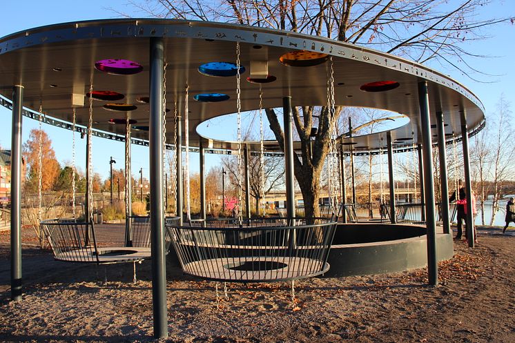 Årstidernas park är en central park i Umeå där många ungdomar rör sig och är på genomfart. Platsen är utformad med ett ovalt tak med fönster i olika färger. I frizonen finns sittkorgar som har hämtat inspiration från karusellen ”Virvelvinden”. Förutom att skapa en plats som är trygg, ljus och inbjudande fanns det önskemål om att det skulle finnas möjlighet att koppla upp sin telefon och kunna spela musik från den, något som nu har blivit verklighet.