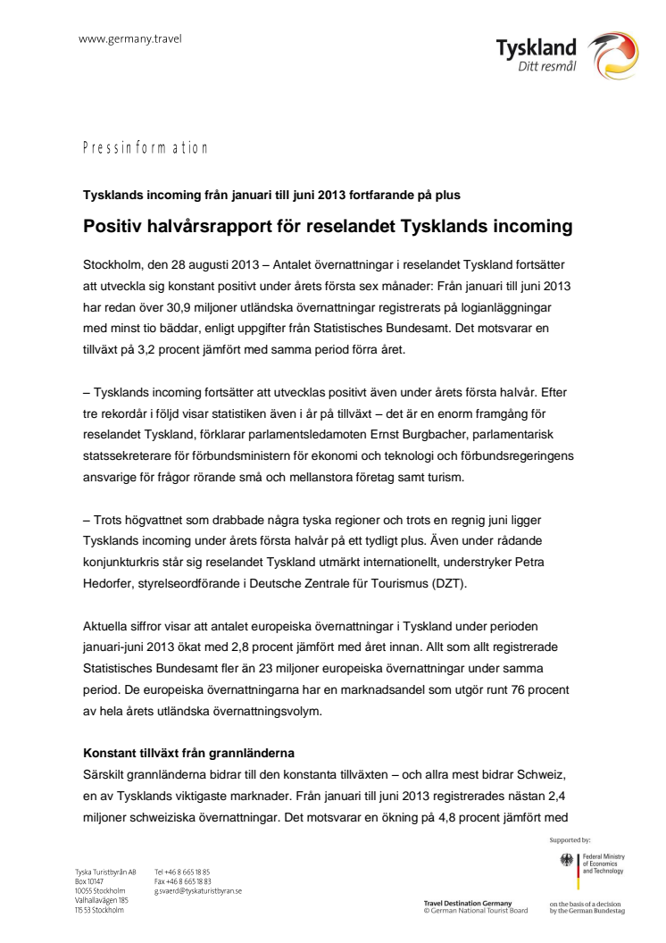 Positiv halvårsrapport för reselandet Tysklands incoming