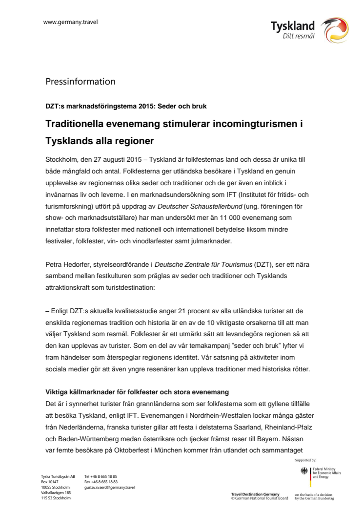 Traditionella evenemang stimulerar incomingturismen i Tysklands alla regioner