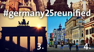 Första pris gick till ett foto av järnverket Völklinger, ett industrihistoriskt arv i Hütte, i förbundslandet Saarland http://iconosquare.com/contests/germany25reunified. Andra till fjärde pris gick till foton av Dresdens operahus, Semperoper och foton av Brandenburger Tor i Berlin och av Leipzig.