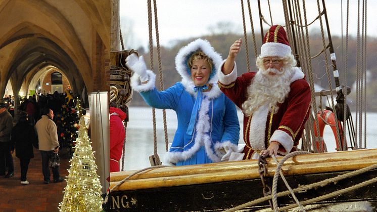 I hansastaden Greifswald anländer jultomten enligt gammal tradition i ett hundraårigt segelfartyg och välkomnas av trombonmusik och stjärnregn i den gamla museumshamnen. Där delar han ut godsaker från sin jutesäck till hundratals barn innan han och hans följe drar vidare i häst och vagn till marknaden, där julgranen tänds och julmarknaden invigs. (www.greifswald.info)
