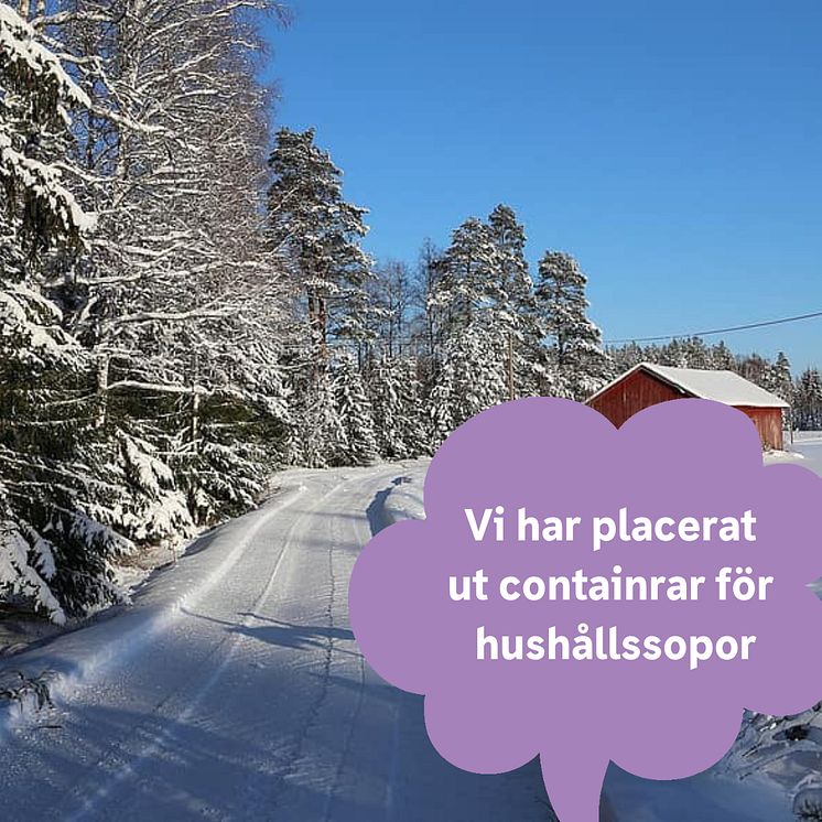På grund av återkommande snö och halka har vi svårt att komma fram och tömma sopor och slam i flera områden. Därför ber vi dig att tänka på att snöröja och halkbekämpa ordentligt. Om du bor ovanför en backe får du gärna ställa dina sopkärl nedanför backen för att underlätta tömning. Om vi inte har möjlighet att tömma dina sopor, låt kärlen stå framme. I de områden där vi inte kommer fram ber vi dig att ställa en extra säck vid nästa tömningstillfälle.