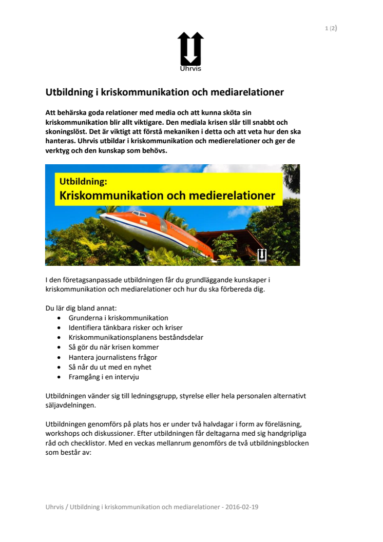Uhrvis utbildar i kriskommunikation och medierelationer och ger de verktyg och den kunskap som behövs.