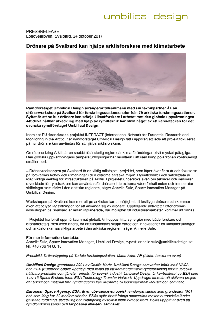 • Umbilical Design erhåller förnyat treårskontrakt från ESA för att överföra rymdteknik till svensk industri
