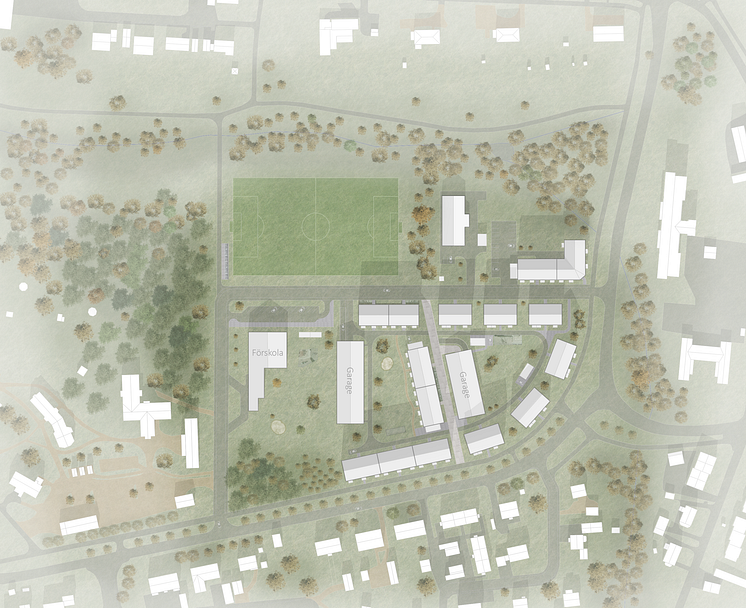 Situationsplan som visar möjlig utveckling längs med Umedalsallén och Sockenvägen. Här planeras för 220-250 nya bostäder
