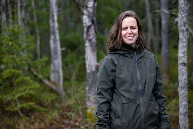 Marlene Olsson, naturvårdare på Umeå kommun i området där man nu gör åtgärder för att främja Vitryggig hackspett