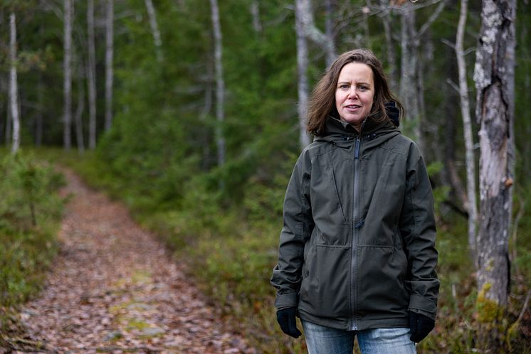Marlene Olsson, naturvårdare på Umeå kommun i området där man gör åtgärder för att främja Vitryggig hackspett