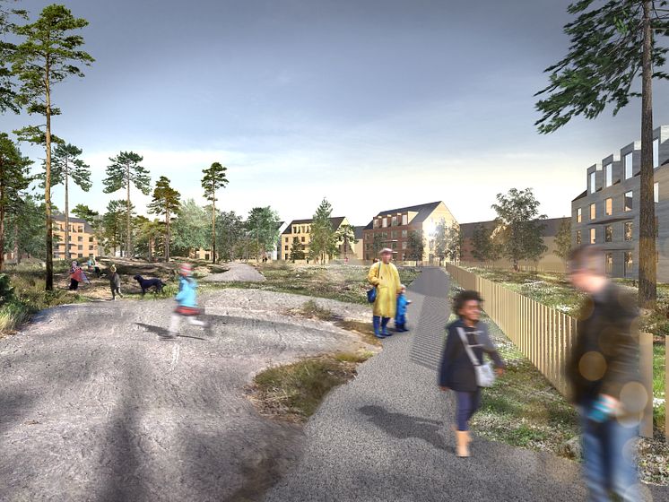 Illustraion planprogram Lilljansberget. Naturmark inom bostadskvarter på Lilljansberget.