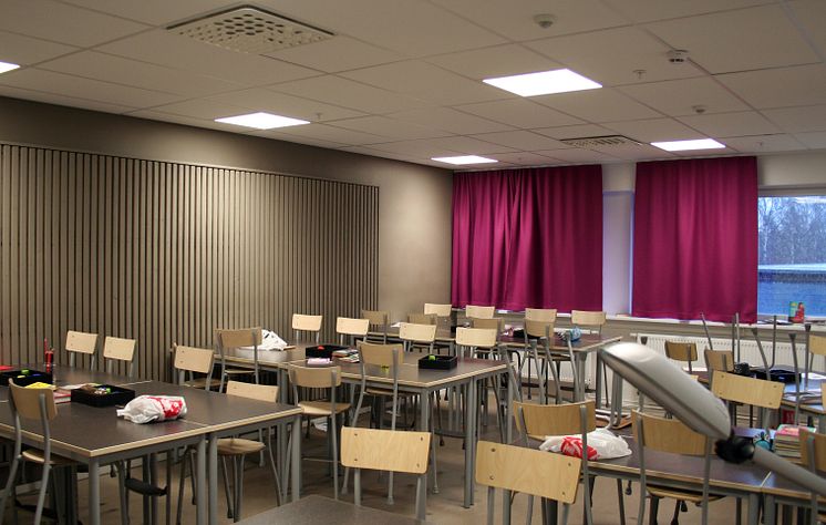 Klassrum med ljuddämpande vägg i Norra Ålidhemsskolan