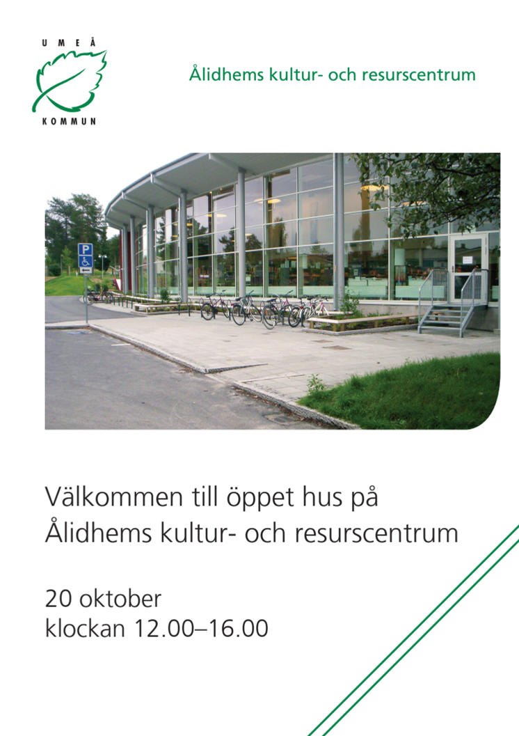 Söndag 20 oktober klockan 12.00–16.00 bjuder Ålidhems kultur- och resurscentrum in till Öppet hus. Alla husets verksamheter (skola, fritidsgård, bibliotek) med samarbetspartners visar upp lokalerna och anordnar aktiveter för alla nyfikna.
