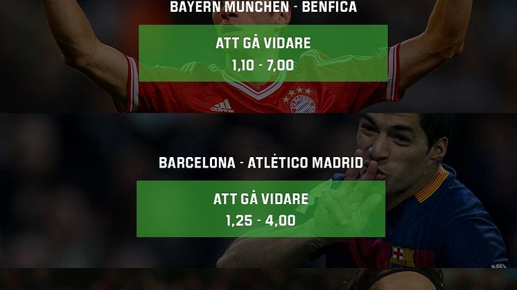 Zlatans PSG lottades mot Manchester City i kvartsfinalen i Champions League och är nu favoriter att ta sig till semifinal. Enligt oddsen får Zlatan sällskap till semifinalomgången av Bayern München, FC Barcelona och Real Madrid.