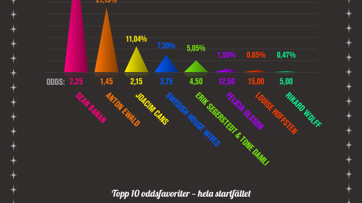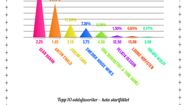 har lagts och vilka artister som är oddsfavoriter i deltävlingen samt att vinna