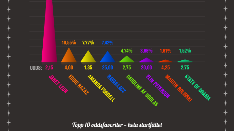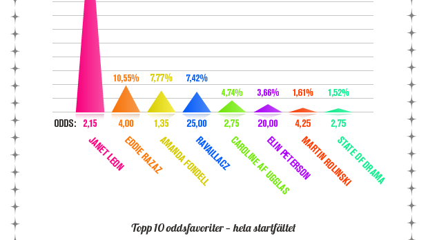 spelen har lagts och vilka artister som är oddsfavoriter i deltävlingen samt